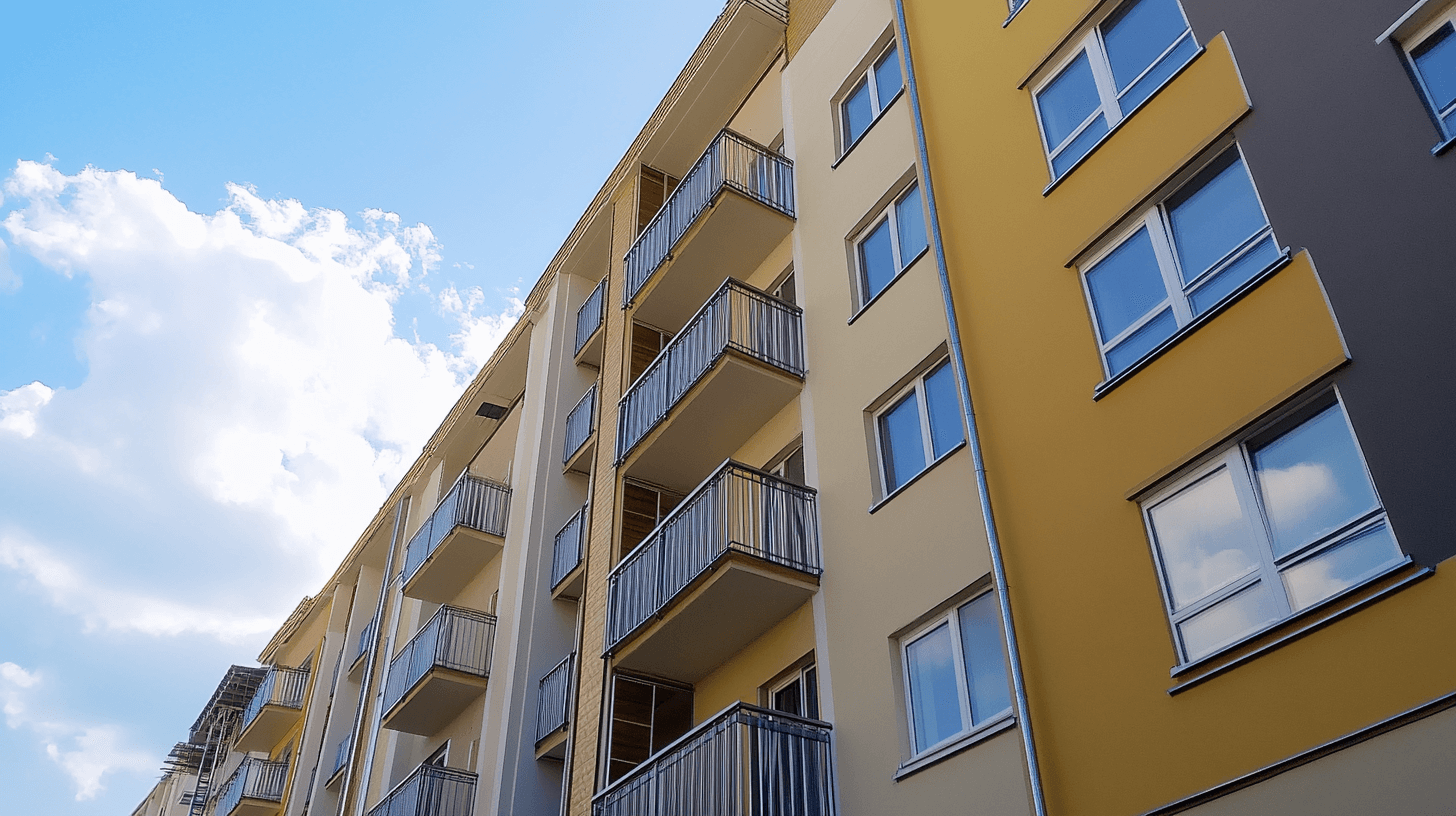 Fassadensanierung mit Wärmedämmung an einem Mehrfamilienhaus